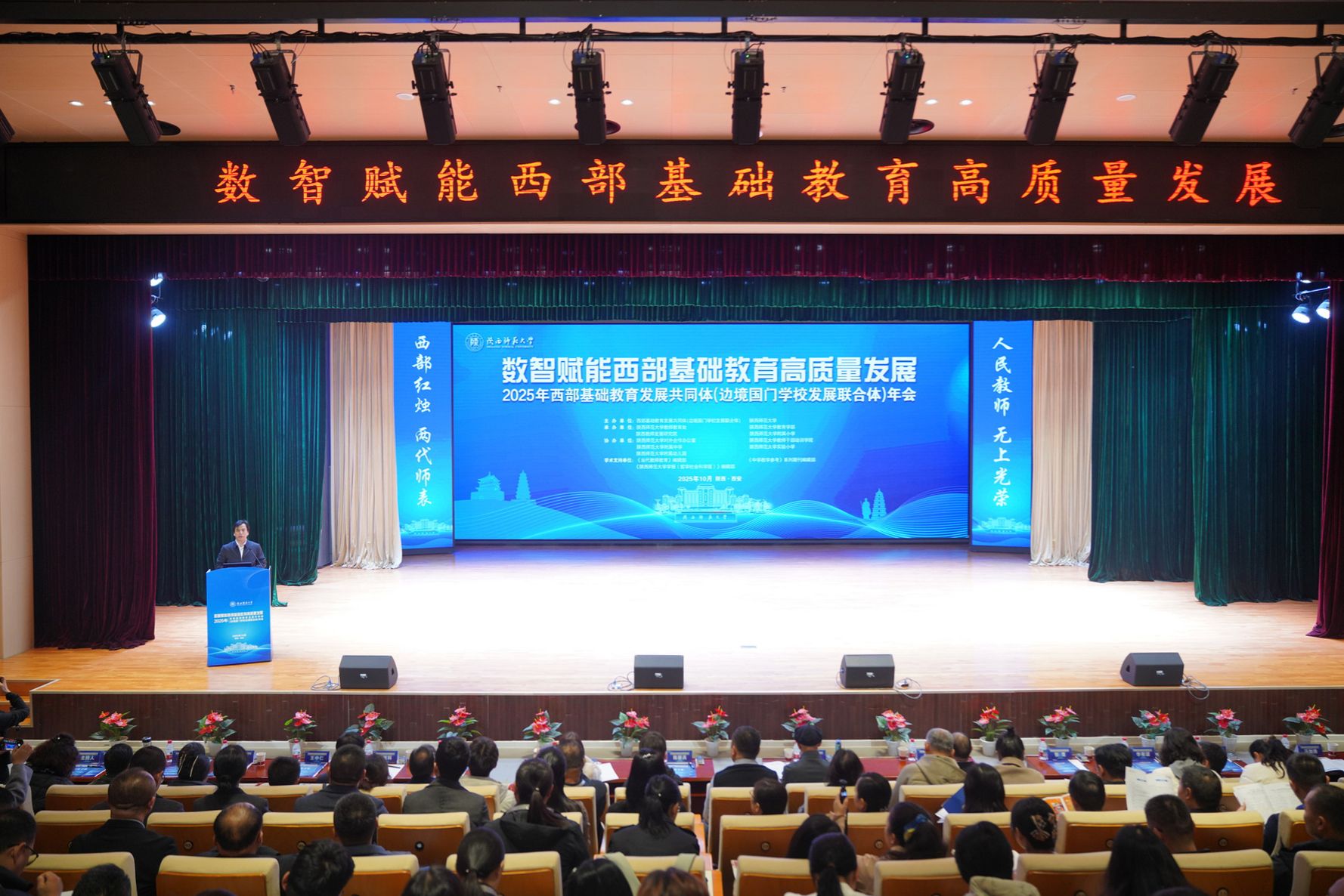 10月25日,由古天乐代言太阳网址主办、太阳成集团tyc234cc古天乐承办的2025年西部基础教育发展共同体(边境国门学校发展联合体)年会在我校附属小学长安校区举办。此次年会主题为“数智赋能西部基础教育高质量发展”。中国教育学会副会长周洪宇、我校副校长陈新兵出席开幕式并致辞。